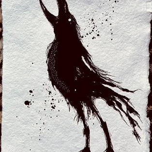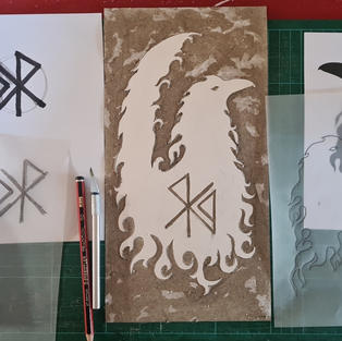 I'm now in the seventh week of this storytelling project with me progressing suggestions from peer group critique sessions and creating a relief printing plate using layered card. Firstly, my focus on the Raven (Corvus corax) continues with me exploring a Viking-inspired concept of creating a heraldic device, which includes a conceptual raven image and making myself a logo using my initials micking an ancient rune. Secondly, I'm creating images suitable for screen, lino-cut and gel block printing again based on the Raven character but using more conceptual imagery rather than my usual realistic illustration methods. I'm still making a simple costume to compliment my papier mache & feather raven mask too. I feel my creative practice does celebrate nature & share the role of this unique bird through its mythology & folklore.
