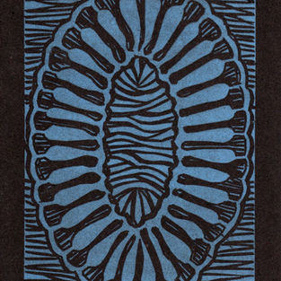Today I collected my lino-cut monoprints from print tutor Monica after a busy session in her studio yesterday creating a body of work that is inspired by the geology of Nower Wood. In particular I created a design based on the fossilised microorganisms that make up chalk, which I used to make two slightly different lino-cut blocks that I printed with hand-mixed water-based black, white and blue inks. The blue pallet was in turn inspired by the blue tones found on the Small Blue Butterfly found in that area of Surrey Hills and mentioned in the Nature's Anthem rap by Still Shady that initiated my FMP plan.